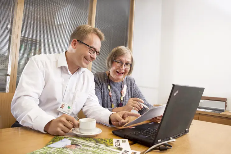 Våra skogskundansvariga betjänar på cirka 120 kontor runt om i Finland. Ett av dem ligger mitt i Helsingfors centrum på adressen Alvar Aaltos gata 1. Där hjälper vi skogsägare i huvudstadsregionen och ger dem råd i ärenden som berör virkeshandel och skogsskötsel.